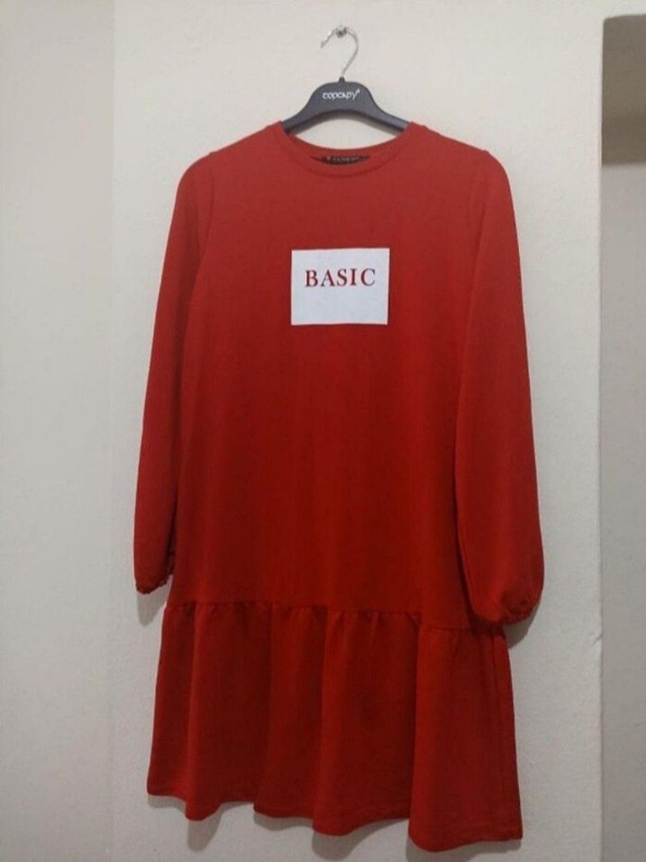 Baskılı, kırmızı midi tunik, yuvarlak yaka ve uzun kolludur. Yumuşak ve sıcak kumaştan üretilmiş, rahat kesimlidir. Günlük kullanıma uygun renkli baskı bulunur.