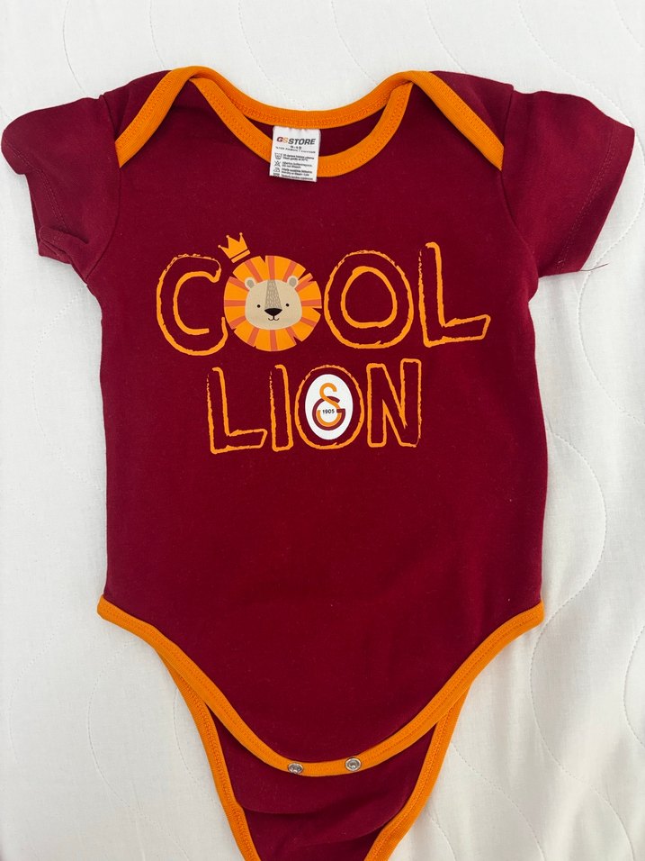 Renkli, kısa kollu ve bisiklet yaka bebek body. Yumuşak ve sıcak kumaştan, önünde 'COOL LION' baskılı aslan figürü bulunur. Turuncu kenar detaylı, streetwear tarzı. Unısex