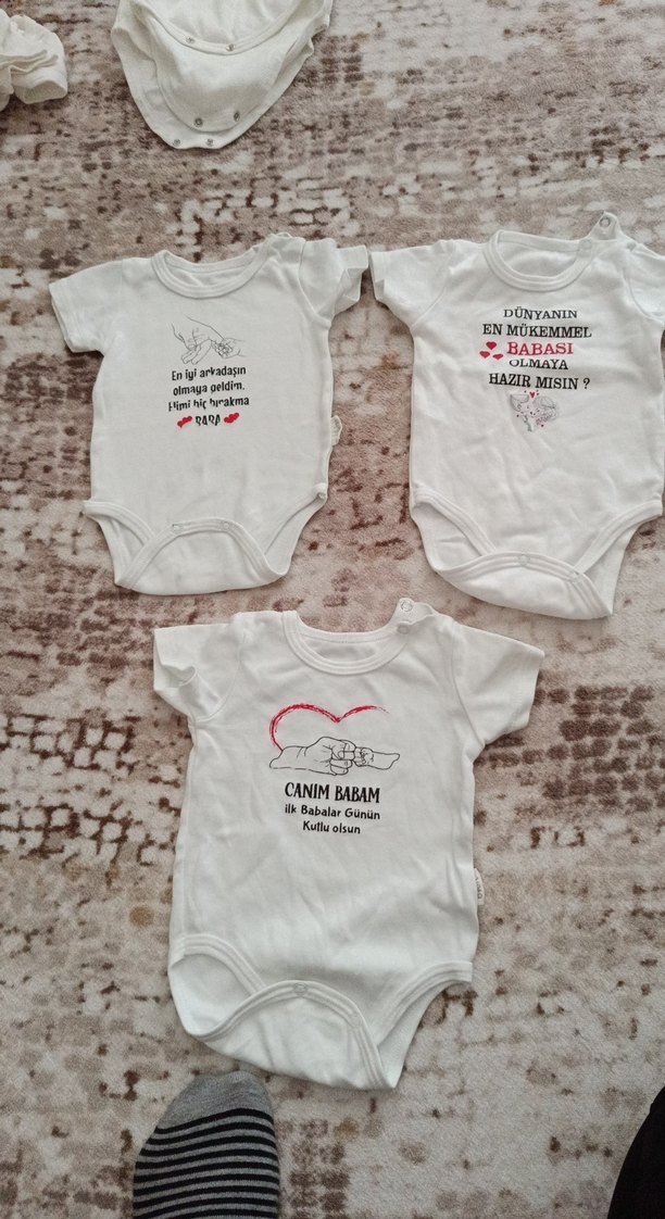 Beyaz kısa kollu bebek kız bodysi, babalar günü temalı baskılı mesajlarla. Yuvarlak yaka, gri ve kırmızı yazı detaylıdır. kısa süreli giyildi tertemiz yerleri çok güzel