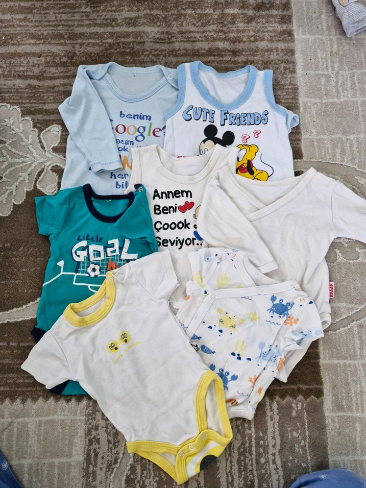Pamuklu, kısa kollu, baskılı ve renkli bebek bodyleri. Yuvarlak yakalı, rahat ve eğlenceli desenlere sahip.