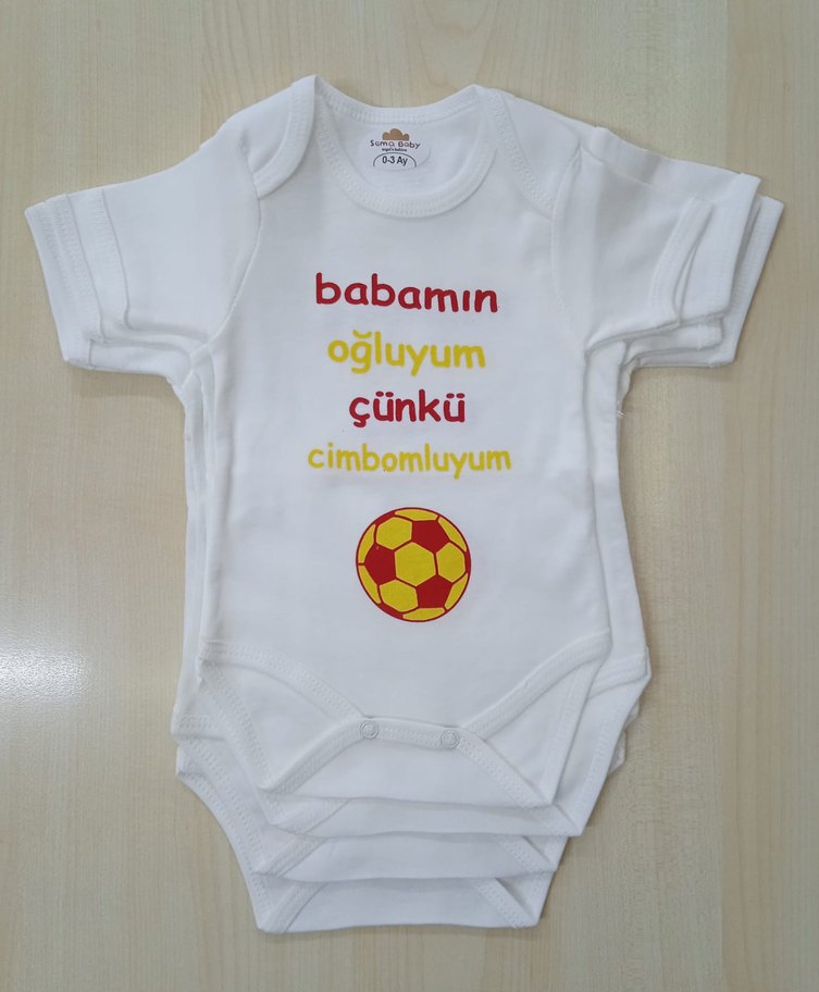 dmden beden iletebilirsiniz)Beyaz renkli, kısa kollu ve yuvarlak yakalı bebek body. Üzerinde renkli baskılar ve düğmeli tasarım bulunur. ⚽