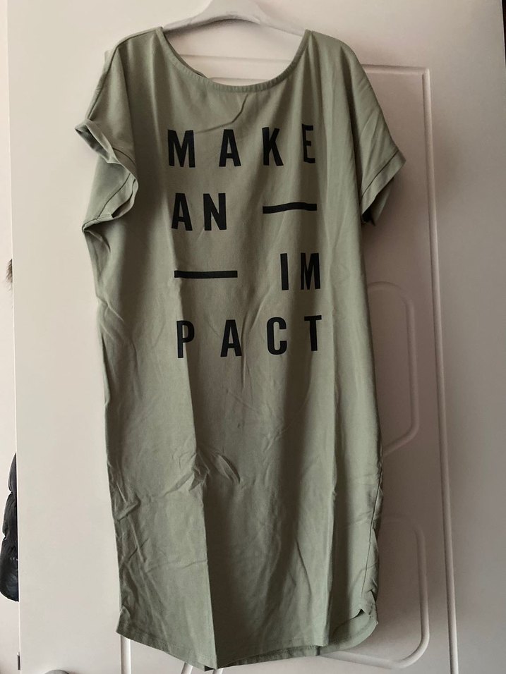 Kısa kollu, yuvarlak yakalı, baskılı hamile elbisesi. Rahat pamuk kumaştan, bol kesim ve normal boyda, günlük kullanıma uygun.