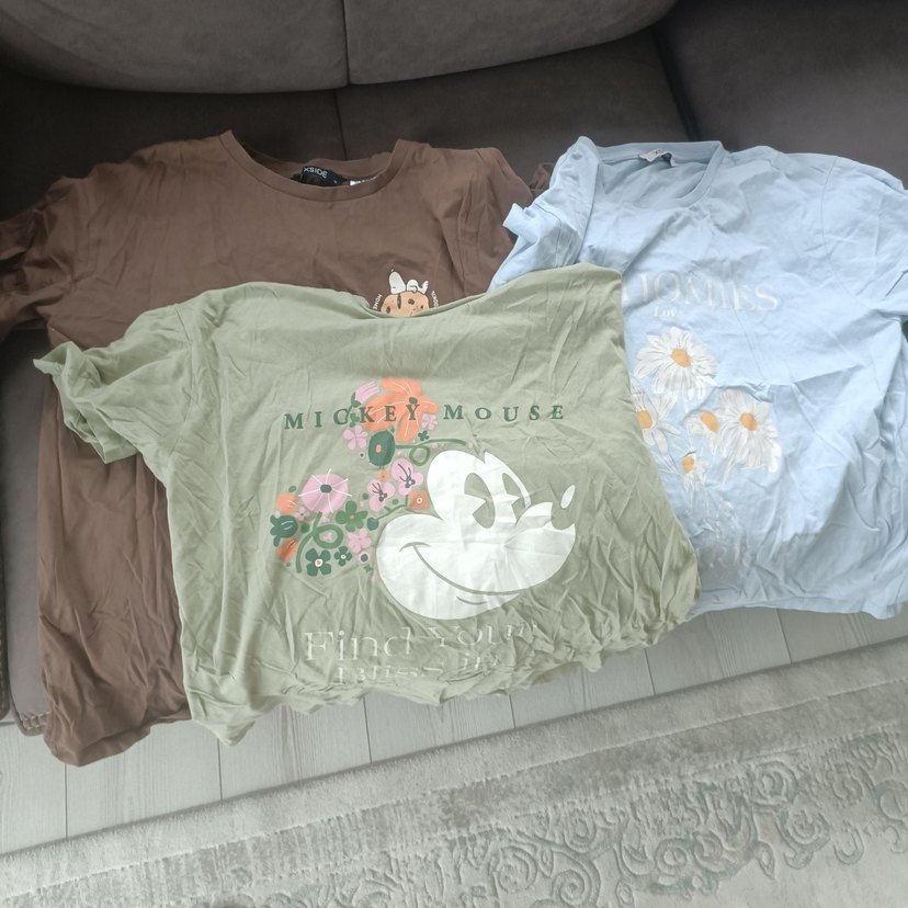 Pamuklu, kısa kollu, bisiklet yakalı, bol kesim kız çocuk tişörtü. Pastel kahverengi tonunda, baskılı Mickey Mouse deseni ile bohem tarzına uygun. s ve m bedene uygun, bol