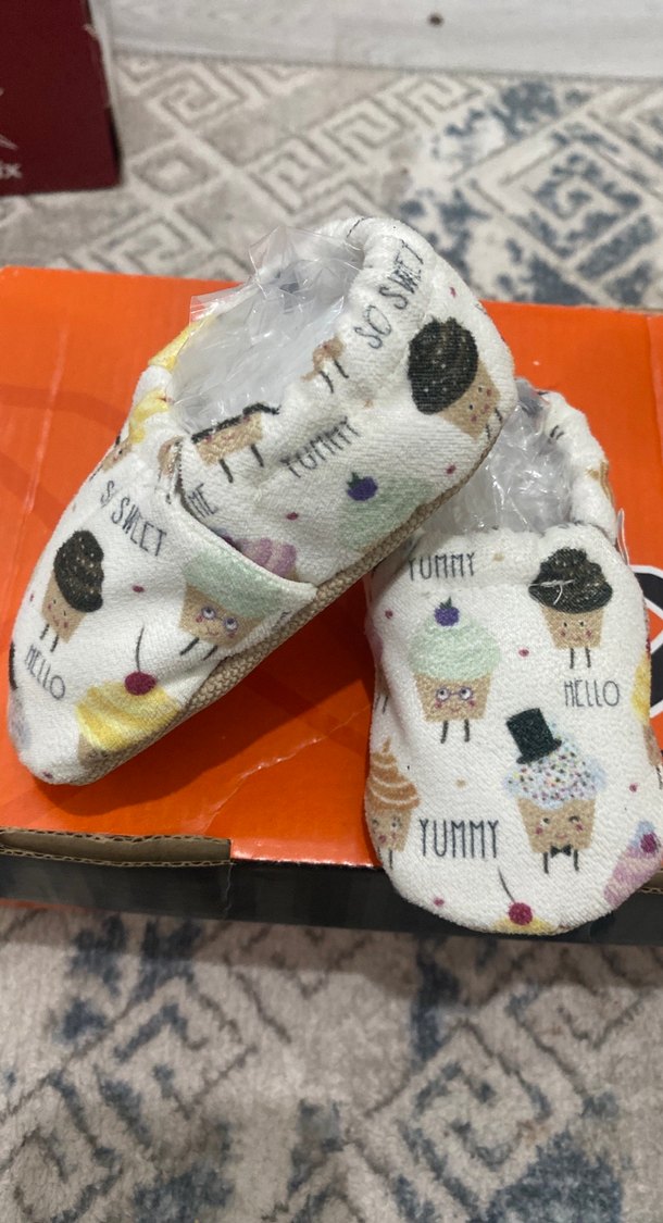 Renkli baskılı desene sahip, yumuşak ve sıcak kumaştan örme erkek bebek ev botu. "YUMMY" yazılı eğlenceli karakterler bulunur. Rahat sokak stili için uygun.