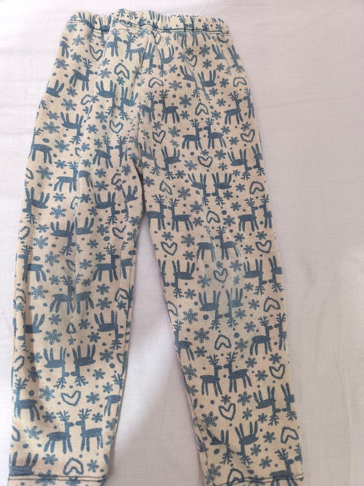 Bej renkte, gri baskılı pamuklu kumaştan, elastik bel detaylı, esnek kız tayt.