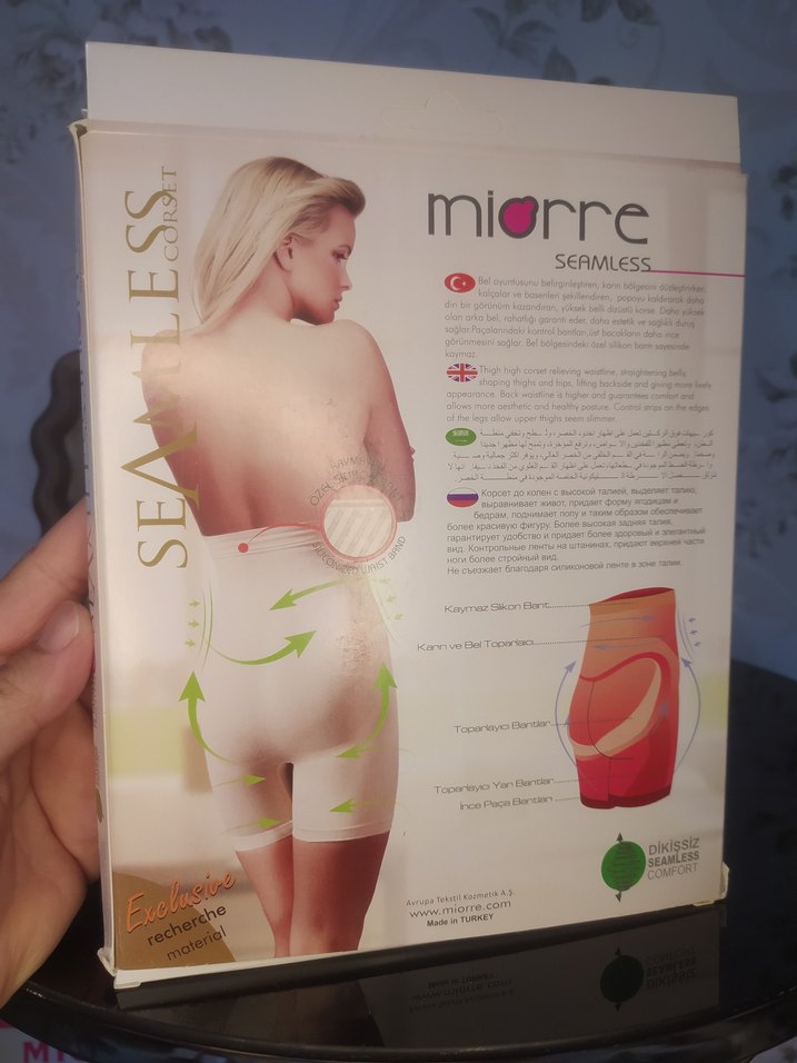 Baskılı, kısa mini boy, vücuda oturan emzirme korsesi. Dikişsiz yapısıyla rahatlık sağlar. Açık beyaz renktedir. Miorre markasıdır.