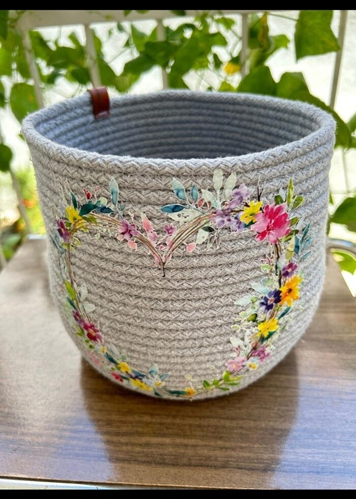 ürün tamamen dikislidir taban ölçüsü 15 cm yükseklik 17 cm ağız genişliği 17 cmdir gri renklidir baskilidir