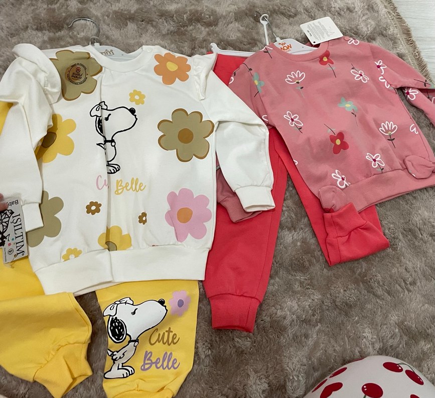Baskılı, Örgü Beyaz ve Renkli Bebek Kız Takımı