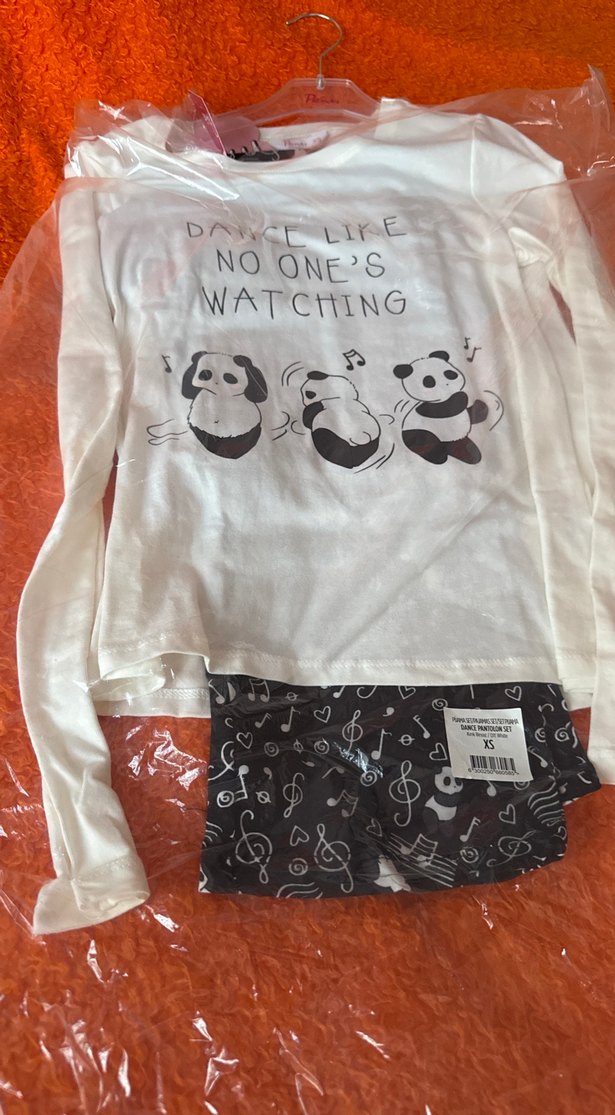Pamuklu, uzun kollu ve bisiklet yaka baskılı pijama takımı