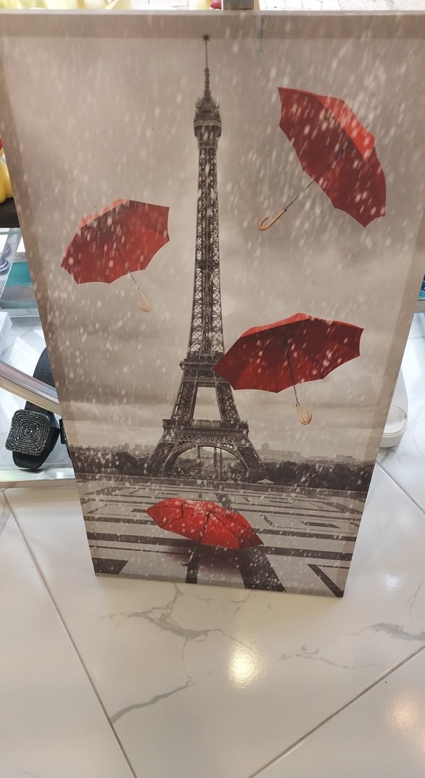 Gri tonlarda Paris Kulesi ve kırmızı şemsiyeler baskılı, çağdaş kadın şemsiyesi. Moda öncülerine uygun. ☂️