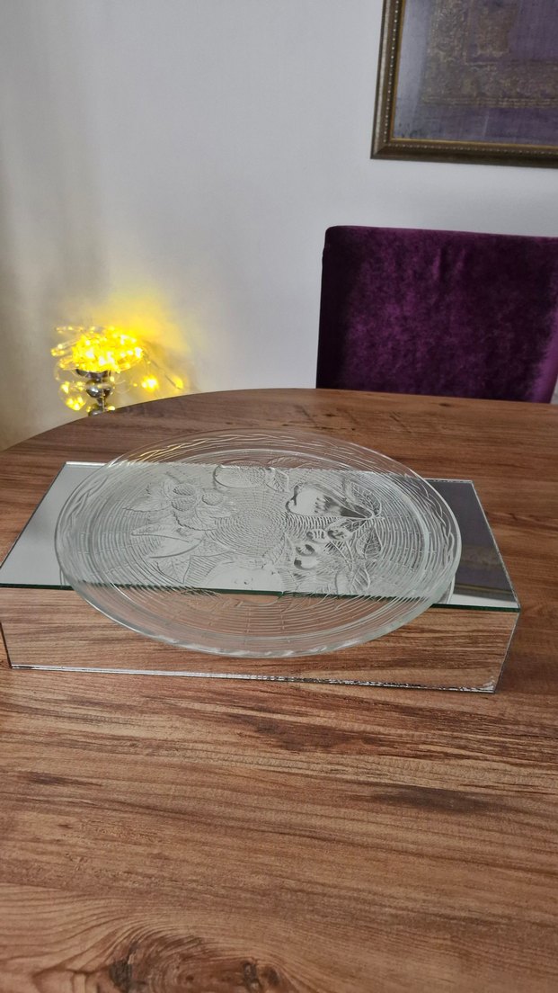 Baskılı desenli, cam meyve tabağı, modern masa düzenleri için uygundur. ️pazarlık payı vardır