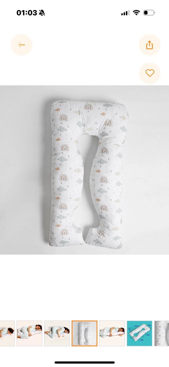 Beyaz zemin üzerinde pastel renklerle baskılı, hamilelik ve emzirme sırasında rahat destek sağlayan yastık. Hiç kullanılmadı. Markası baby mom e bebekten alındı