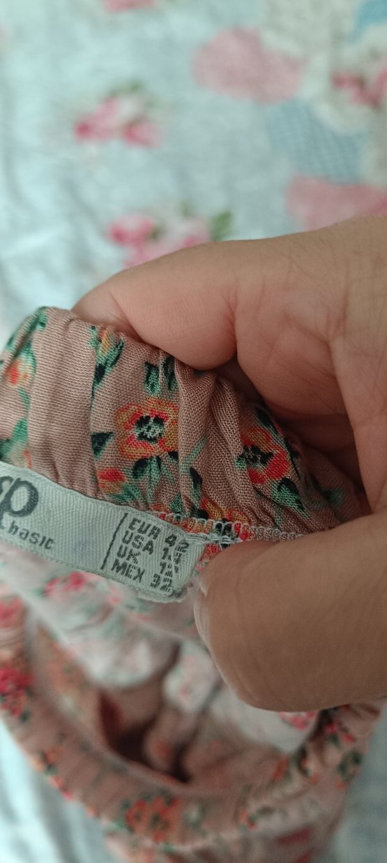 Baskılı çiçek desenli, pastel bej renkli, kısa mini kesim altı şortlu . Rahat kullanım için uyumlu kesim. Etikette beden bilgisi bulunur
