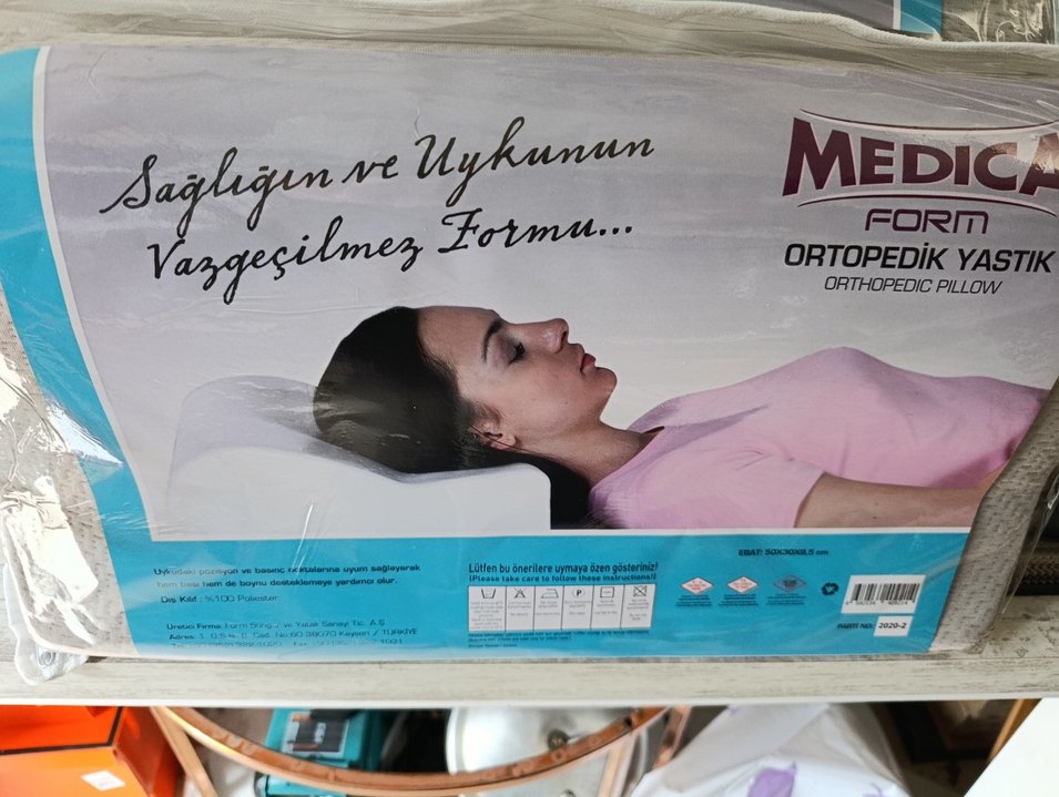 Beyaz zemin üzerine pastel renklerde baskılı desenli emzirme ve hamile yastığı, konforlu destek sağlar. Ambalaj üzerinde bakım talimatları yer almaktadır. visko yastık