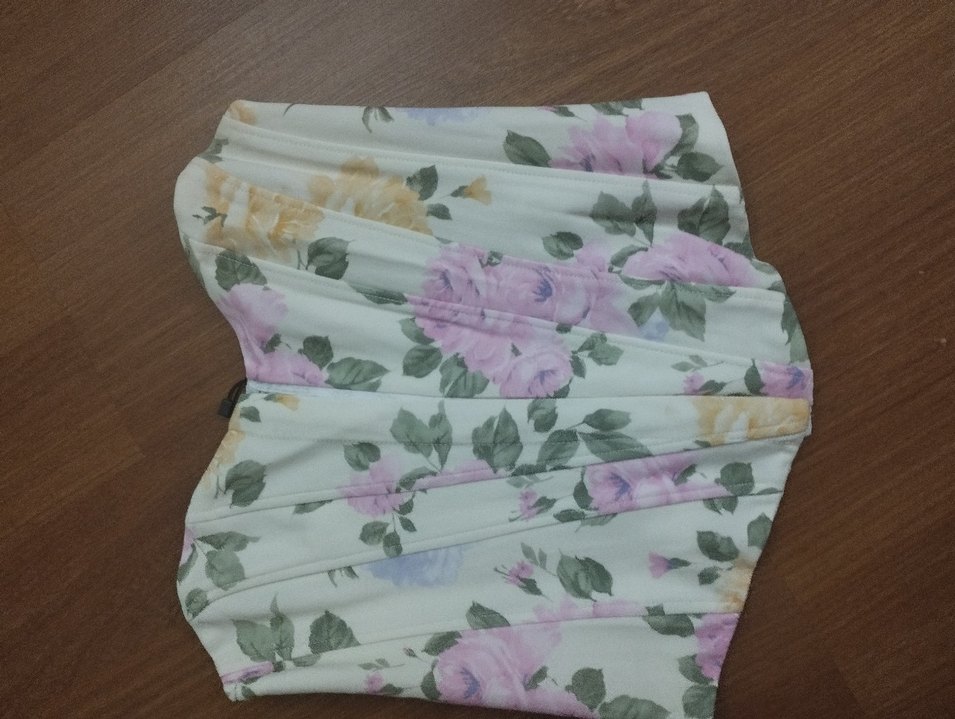 Pastel renklerde çiçek desenli, midi boy, vücuda oturan straplez crop