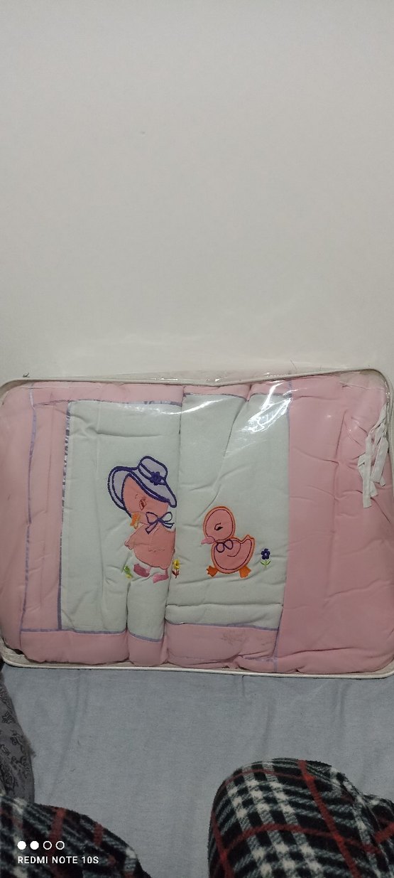 Pastel pembe renkte, baskılı ördek desenli, yumuşak ve sıcak dokulu bebek uyku seti. 4 kenarlık 1 yorgan yorgan 80*140 cm