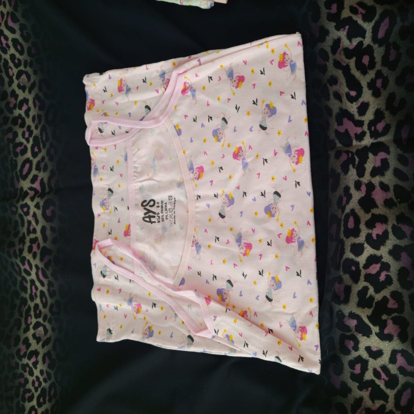 Pastel pembe renkte, küçük renkli baskılarla süslenmiş çocuk atleti. Yumuşak ve rahat kumaştan üretilmiştir.