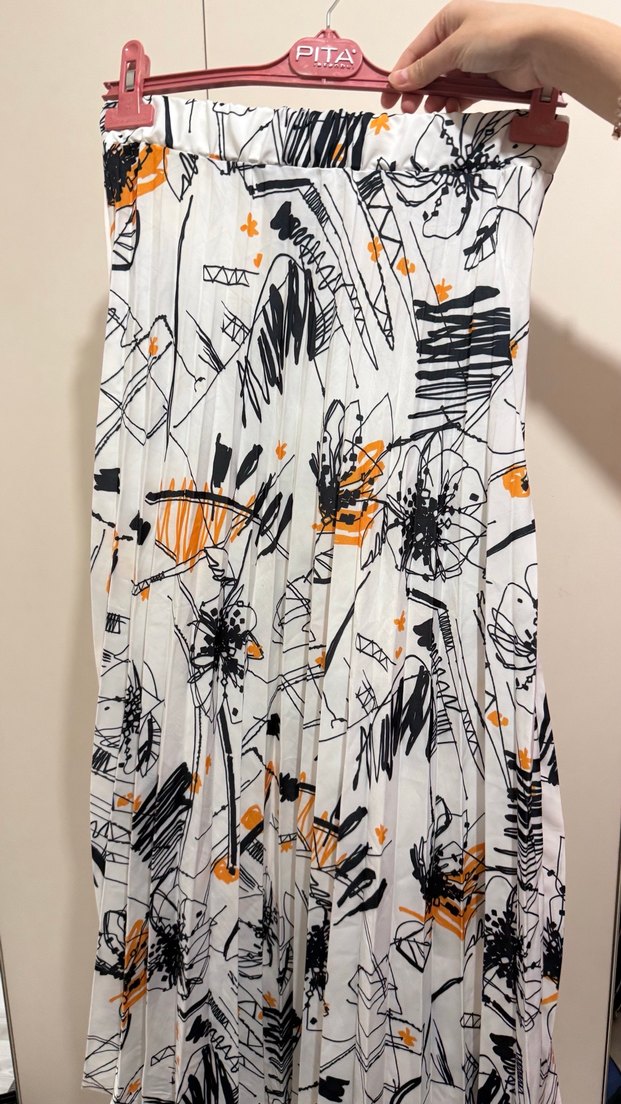 Baskılı Pilili Uzun Kadın Etek