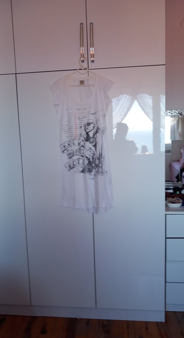 Yumuşak pamuk kumaştan, kısa kollu, V yakalı, baskılı ve midi uzunlukta bol kesim Rahat sokak stili için uygundur.