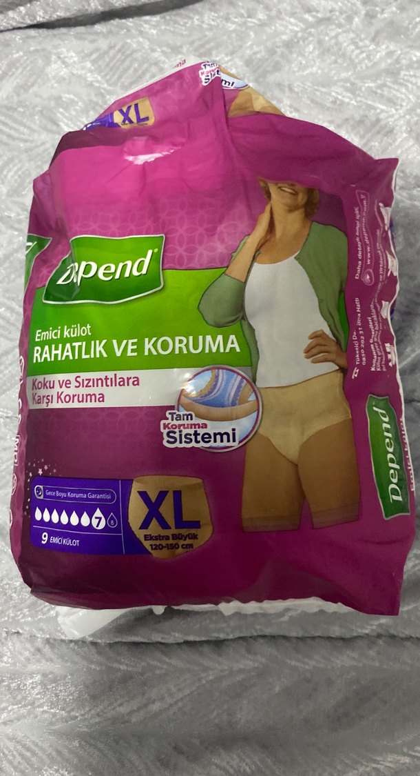 Baskılı, bol kesim, açık pembe emici külot. Koku ve sızıntılara karşı tam koruma ve rahatlık sağlar. XL beden.