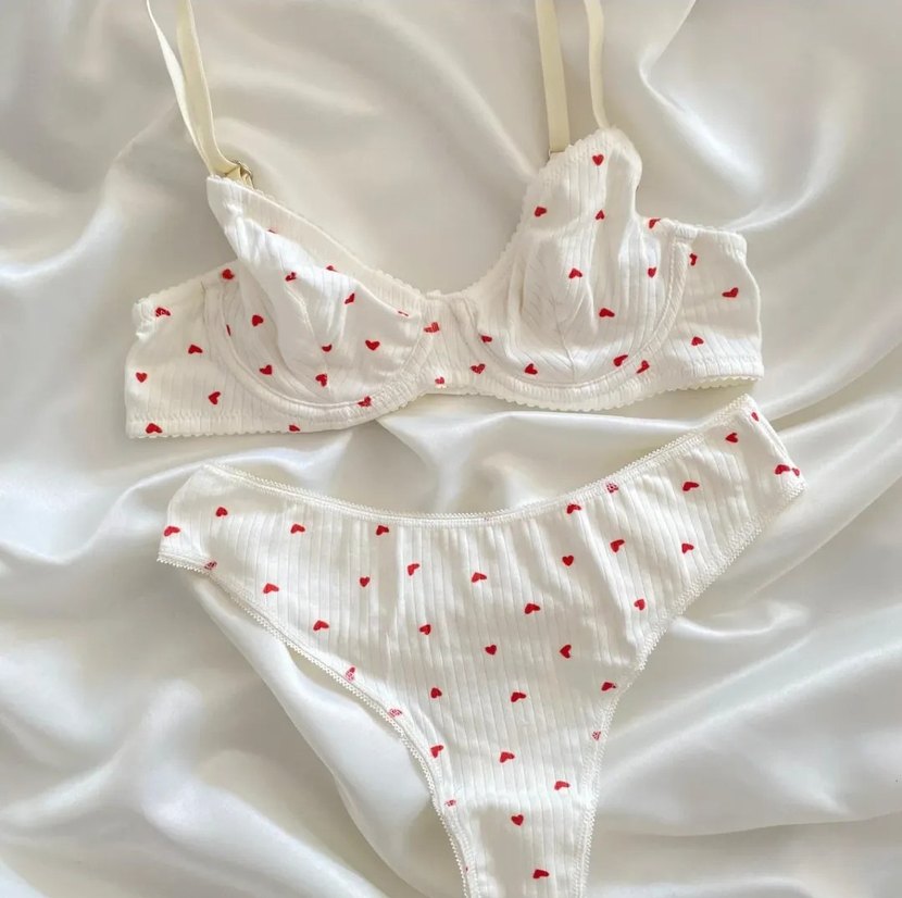 Kırmızı kalp nakışlı beyaz sütyen, normal uzunlukta ve Parisian streetwear tarzında. Hafif ve narin kumaş konfor sağlar. ❤️ 75-80-85-90