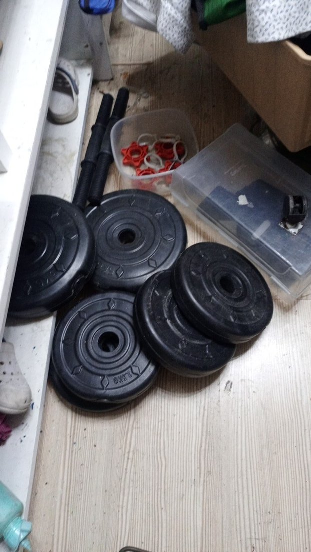 Baskılı desene sahip siyah egzersiz matı, antrenman sırasında konfor ve tutuş sağlar. Çeşitli fitness aktiviteleri için uygundur. 2 tane 5kilo2 tane 10 kg