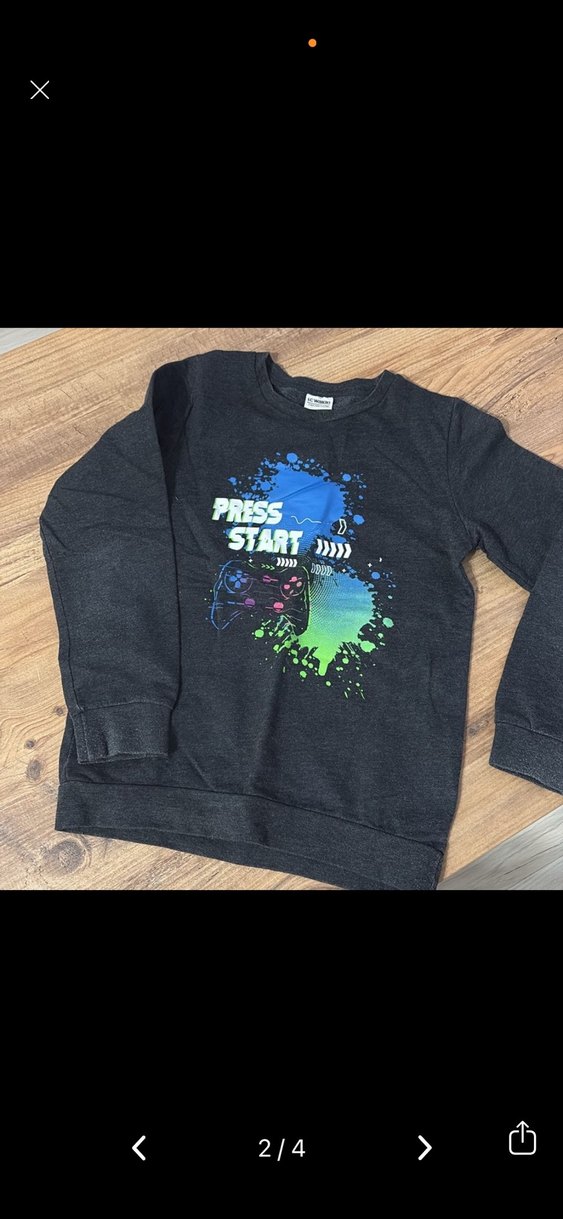Siyah, uzun kollu, yuvarlak yaka ve bol kesim erkek sweatshirt. Renkli baskılı grafikler ve 'PRESS START' yazısı bulunur. Yumuşak ve sıcak kumaştan üretilmiştir.