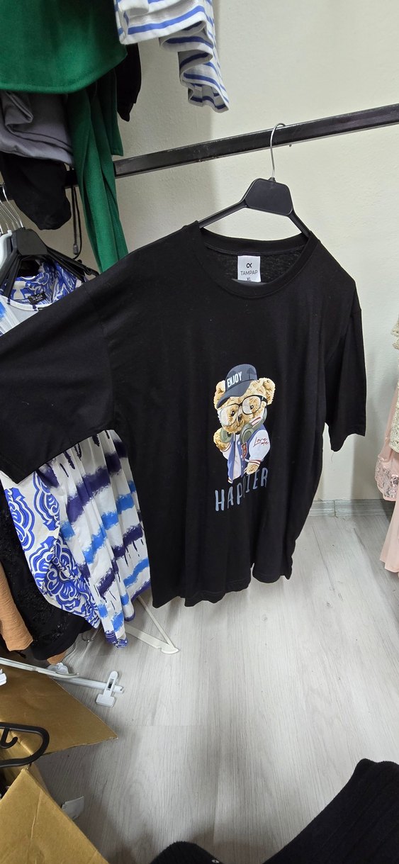 Siyah hamile tişörtü, pamuklu kumaştan, kısa kollu ve yuvarlak yaka. İki ayı figürlü baskısı ve rahat kesimi ile günlük kullanıma uygundur.