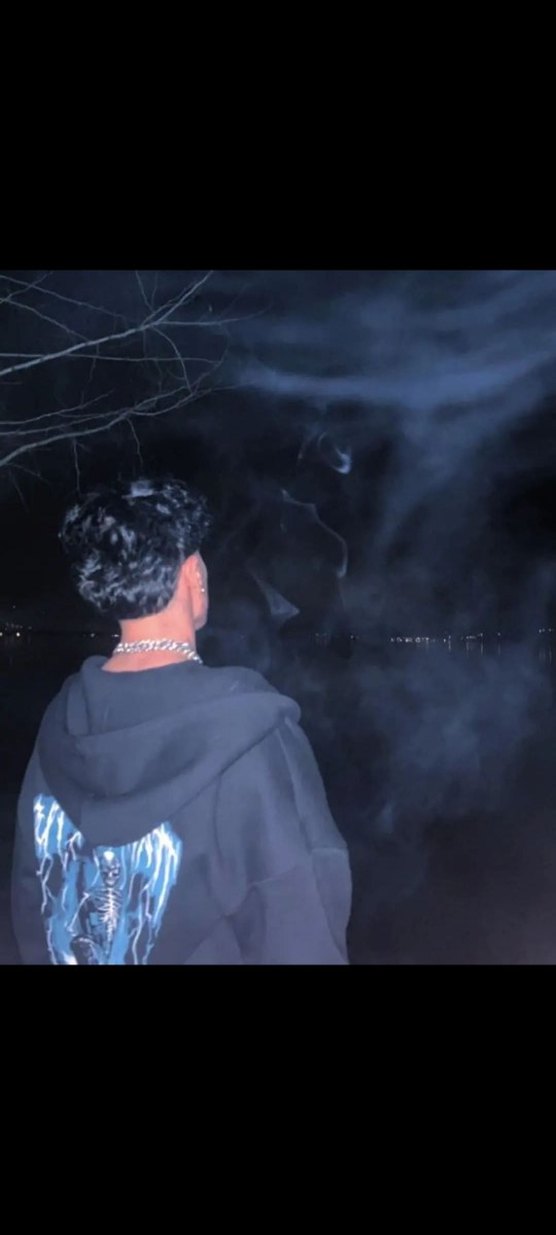 Bol kesim, yakalı ve uzun kollu siyah erkek sweatshirt. Koyu renkli batik desenli ve zincir detaylı, denim kumaştan, sokak modası tarzında.