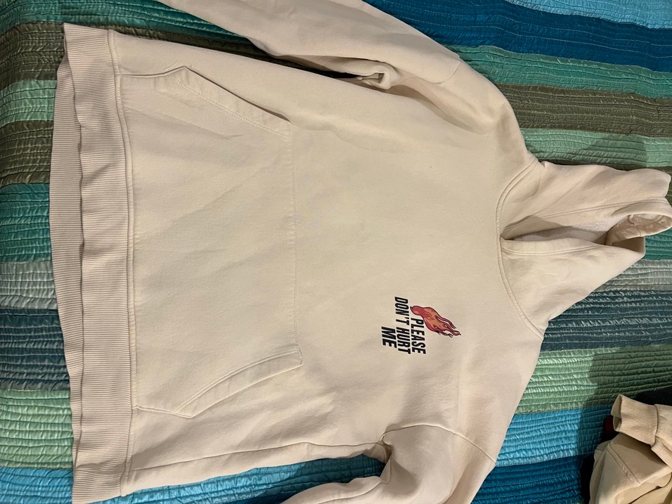 Herhangi bir kusuru yoktur .Baskıları fotoğraftaki gibi canlıdır.Beyaz, yuvarlak yakalı, uzun kollu sweatshirt. Önünde küçük alev baskısı ve fermuarlı detay bulunur. Yumuşak ve sıcak kumaştan yapılmıştır.