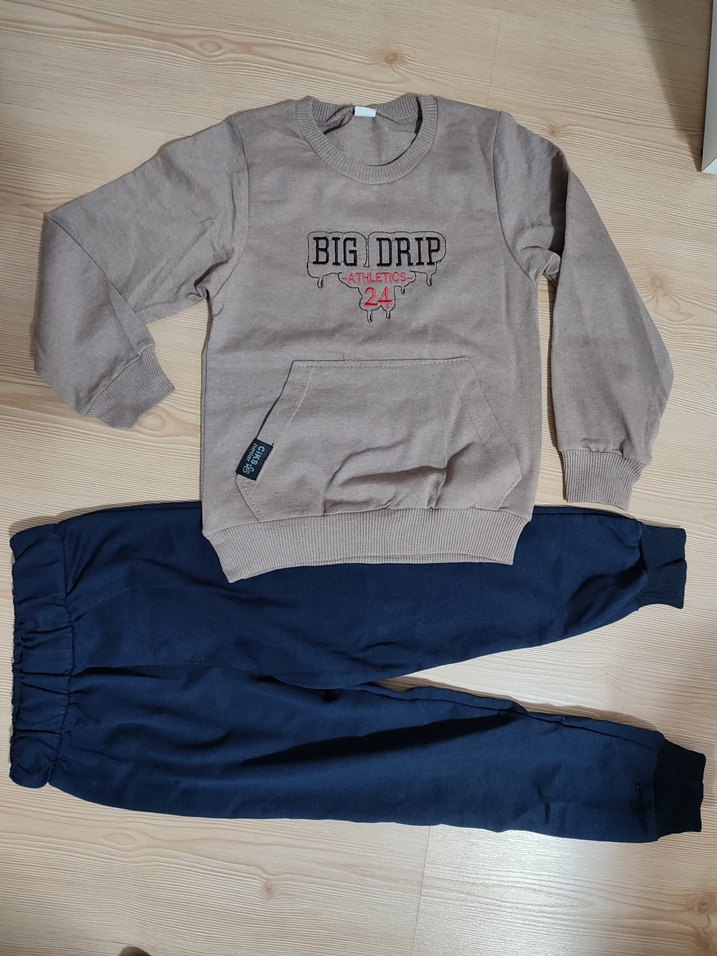 i baskılı, yuvarlak yaka venormal l kesim erkek sweatshirt ile lacivert eşofmandan oluşan takım. Yumuşak ve sıcak kumaş, rahat ve şık sokak stili sunar. "BIG DRIP" ve "24" baskılı. en35 boy 48 kol boyu 40 cm alt pantolon bel 24 boy 60 cm