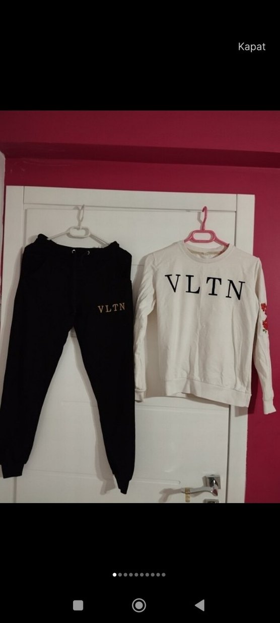 Pamuklu, fitted kesim yaka baskılı sweatshirt ve Velcro detaylı siyah eşofman pantolon içerir. Trendy casual tarz için uygundur.
