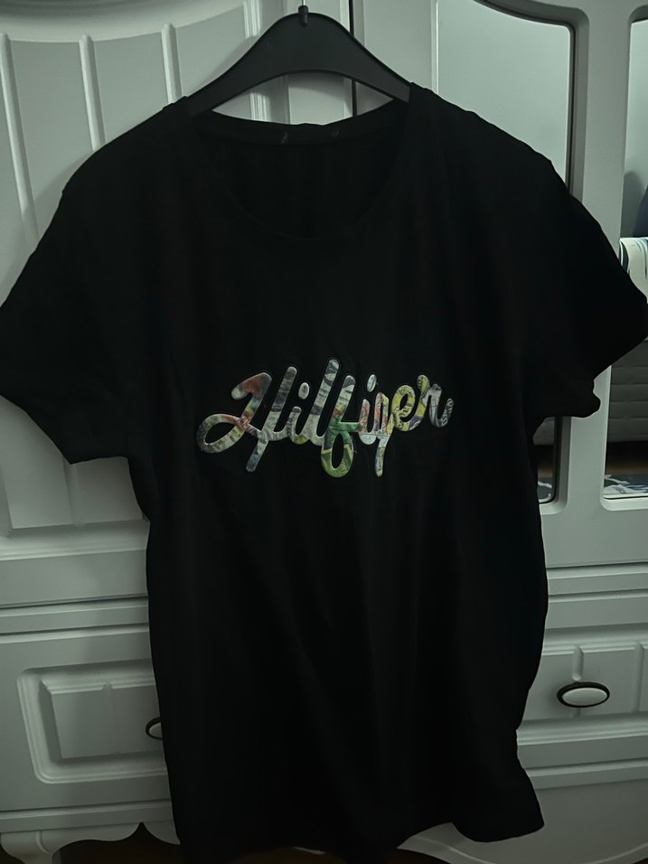 Pamuk kumaştan yapılmış, kısa kollu, yuvarlak yakalı siyah tişört. Gevşek kesim ve baskılı logo detayına sahip, günlük kullanım için uygun.