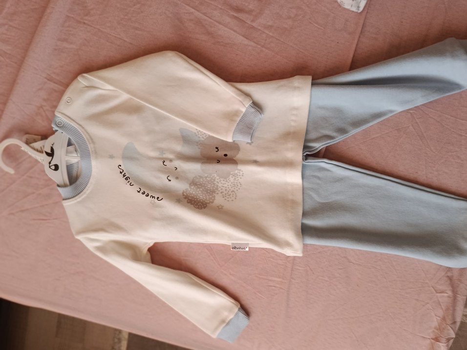 Beyaz üstü pastel baskılı, uzun kollu, bol kesim çocuk pijama takımı. Kısa boy ve yuvarlak yaka ile rahat kullanım sağlar.