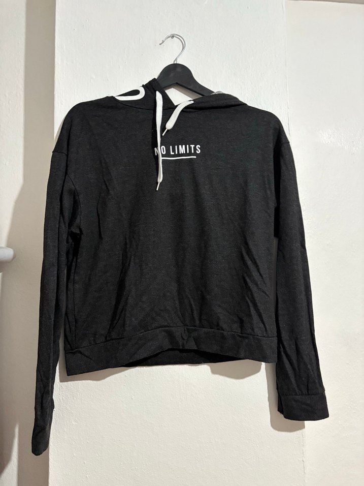 Pamuklu, uzun kollu, bisiklet yaka, baskılı "NO LIMITS" detaylı siyah bol kesim sweatshirt. Günlük kullanıma uygundur.
