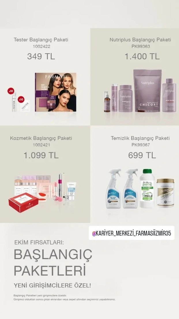 Tester, Nutriplus, kozmetik ve temizlik başlangıç paketlerini içeren cilt bakım setleri. Farklı fiyat seçenekleri ile sunulmaktadır. Ürünleri sormadan almayın