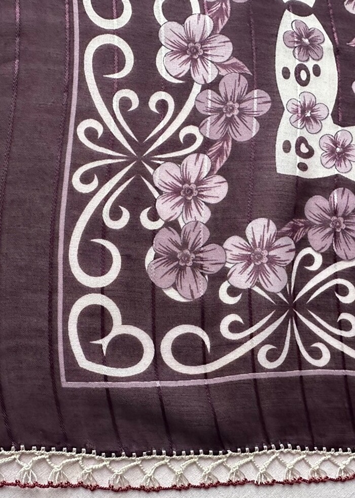 İçinde parlak şeritler olan mor başörtü