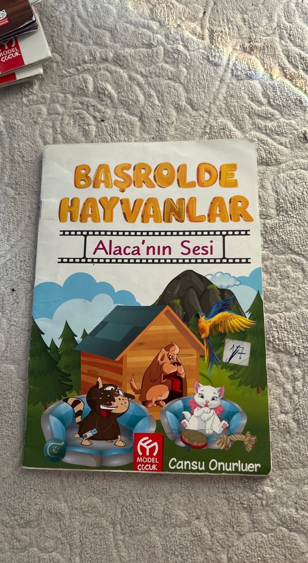 Cansu Onurluer'in yazdığı, Model Çocuk'tan çıkan 'Başrolde Hayvanlar: Alaca'nın Sesi' adlı çocuk kitabı. Alti çizili yerler var
