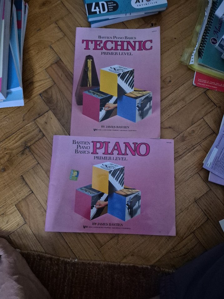 Başlangıç seviyesi için Bastien Piano Basics Technic ve Piano kitapları seti.