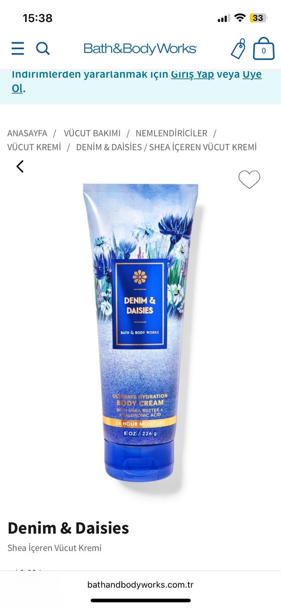 Sadece bir kaç kez denenmiştir, %80 doludur Denim & Daisies vücut kremi, shea yağı içerir ve cilde 24 saat nem sağlar.