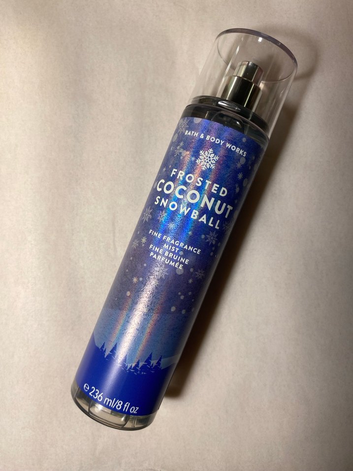 Bath & Body Works Frosted Coconut Snowball ince koku spreyi, kışın ferahlatıcı hindistancevizi aroması sunar. 236 ml sprey şişesi karlı tasarıma sahiptir. ❄️spreyi alana kremi hediye yollayacağım.