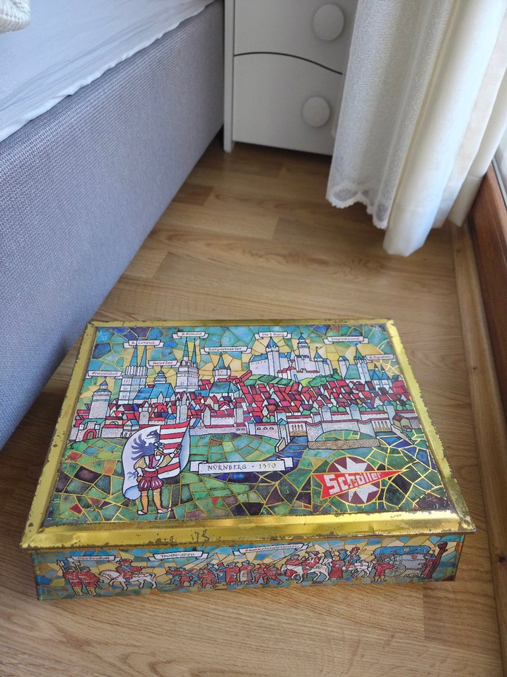 Metal Kutu West Germany Batı Almanya Metal Tın Nuremberg 1570 Art Litho Antika Metal Avrupa Kutu