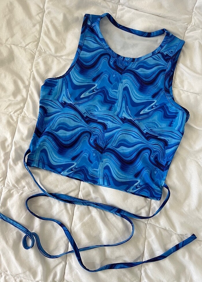 Batık desen ipli halter yaka crop