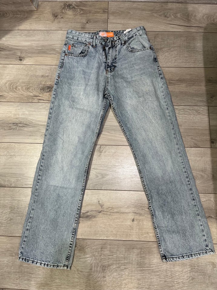 Gri batik desenli, salaş kesim kot pantolon. Günlük sokak modasına uygun, rahat ve şık midi boy.