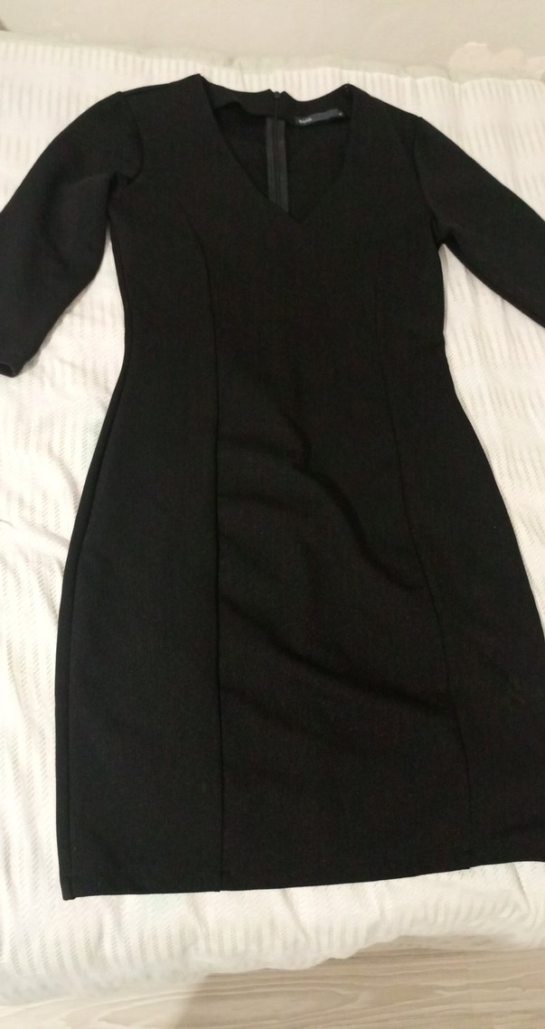Düz siyah, midi boy, regular fit kadın kumaş elbisedir S bedendir Fotoğraftada göründüğü gibi sağ aşağıda ufak bir kumaşı parlaması var neden olduğunu bilmiyorum Mantıklı teklifler değerlendirilecektir
