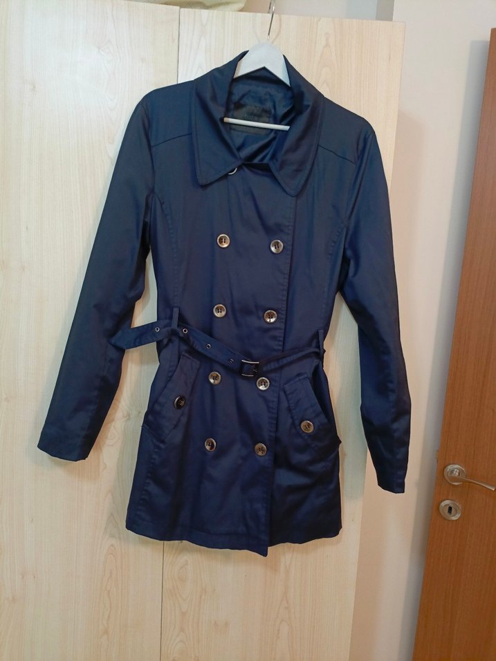 Lacivert renkte, düğmeli ve kemerli, normal boy midi trençkot. Notched lapel yakalı, strappy kollu, rahat kesimdir. 82 cm boyunda