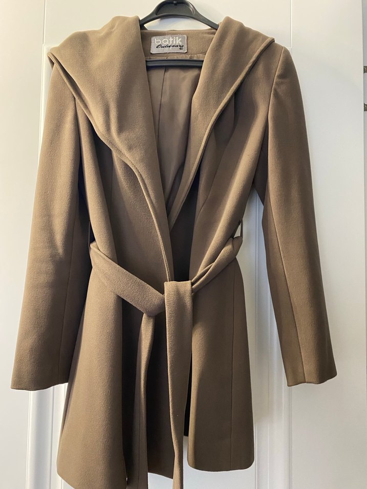 Batik marka Kahverengi Kapüşonlu Kemerli Kaban