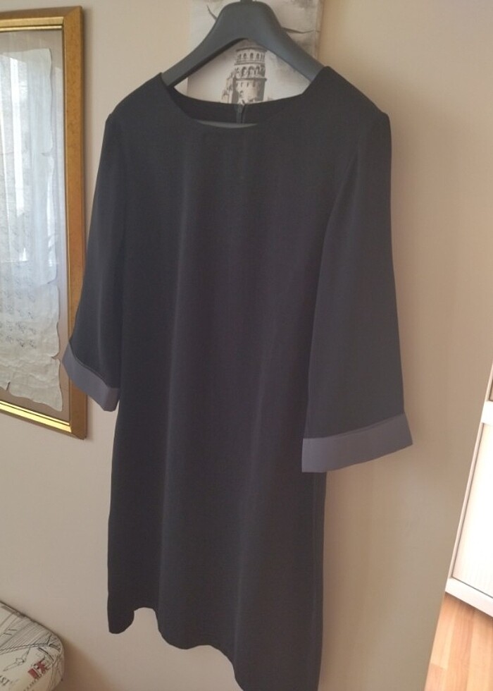 Siyah fakir kol sorunsuz ince krep yazlık şık bi elbise