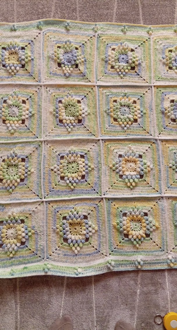Pastel renklerde, hafif ve çok renkli örgü kare desenli yumuşak dokulu battaniye. Rahat ve dekoratif bir kullanım sağlar.