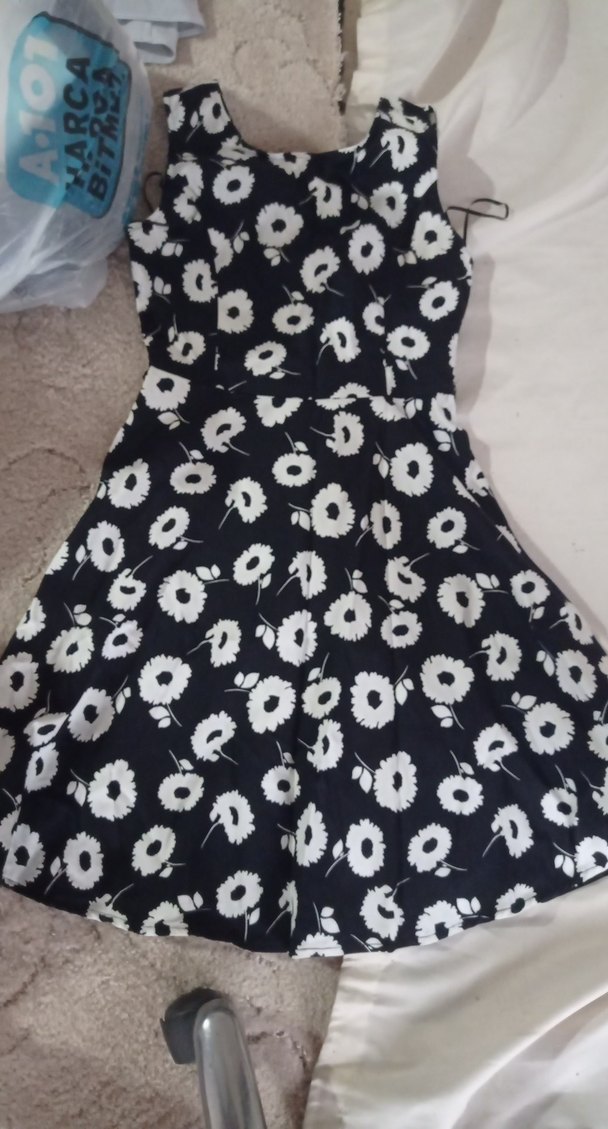 Batik Siyah Beyaz Çiçek Desenli Elbise